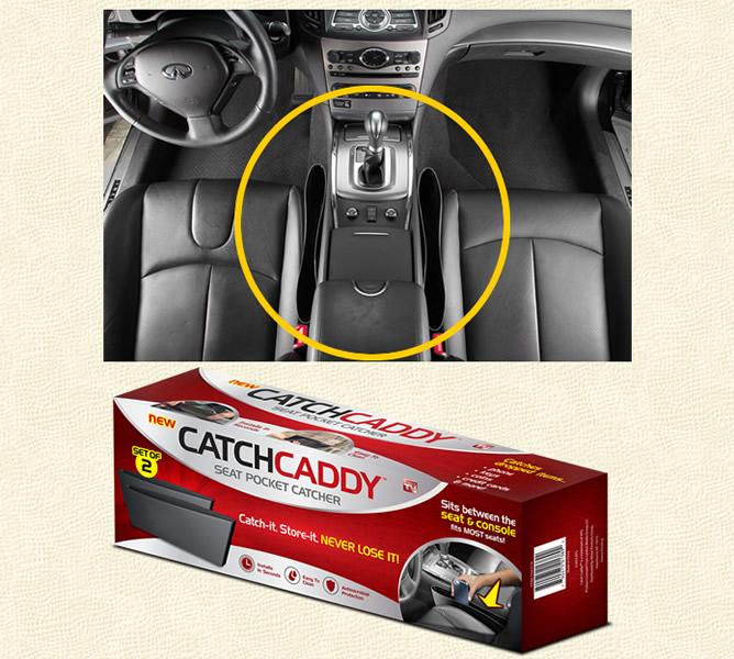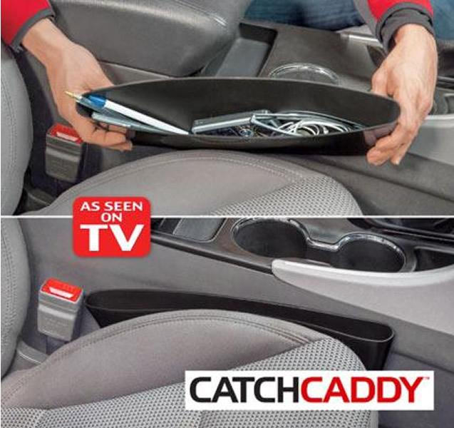 Catch Caddy navíc zabrání neustálému ztrácení věcí v prostoru mezi sedačkou a středovým panelem. Zapadlé mince a složité dolování telefonu je už minulostí!