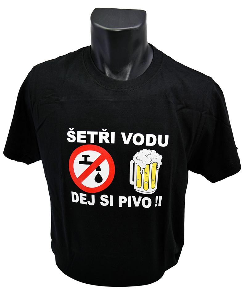 Tričko šetři vodu dej si pivo je vhodné pro každodenní nošení do zaměstnání nebo za zábavou. Vtipné tričko je vyrobeno ze 100% bavlny a jeho velikost splňuje klasickou konfekci. Tričko šetři vodu dej si pivo je dodáváno pouze v černé barvě.