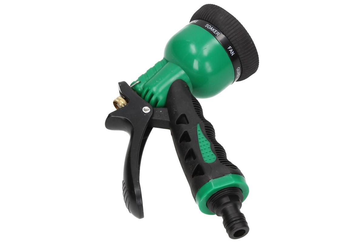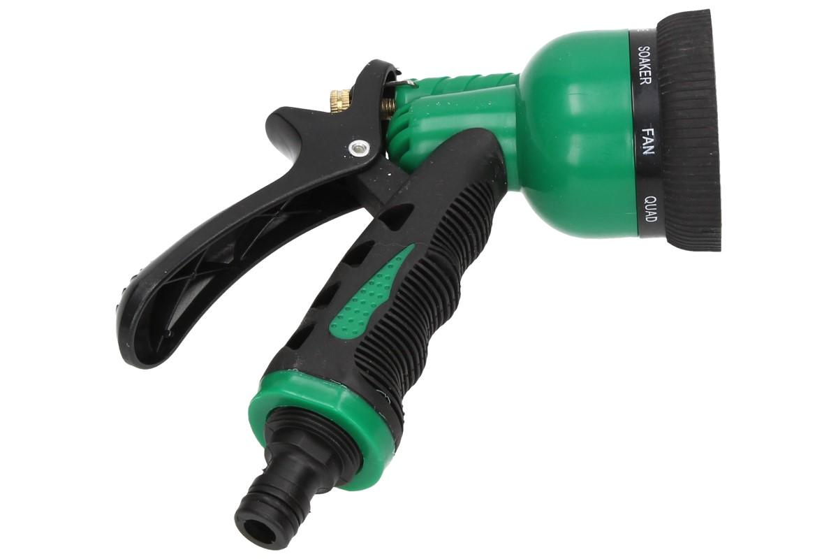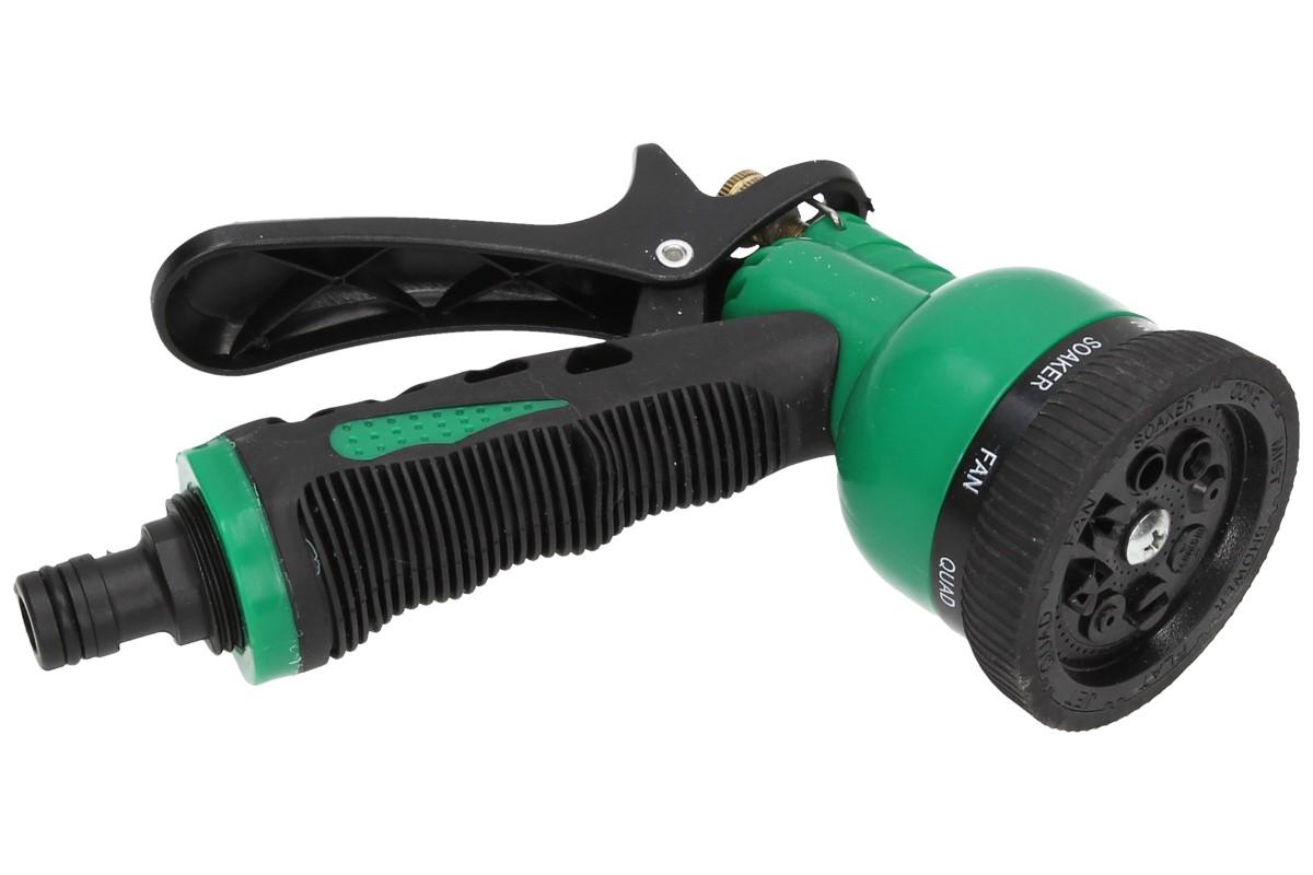 Hadicová hlavice s rozprašovačem je univerální hlavice, která lze připevnit na jakoukoliv hadici pomocí rychlospojkami. Hadicová hlavice má ergonomický tvar rukojeti, velmi příjemně se drží. Na hadicové hlavici lze nastavit možnost intenzity průtoku.