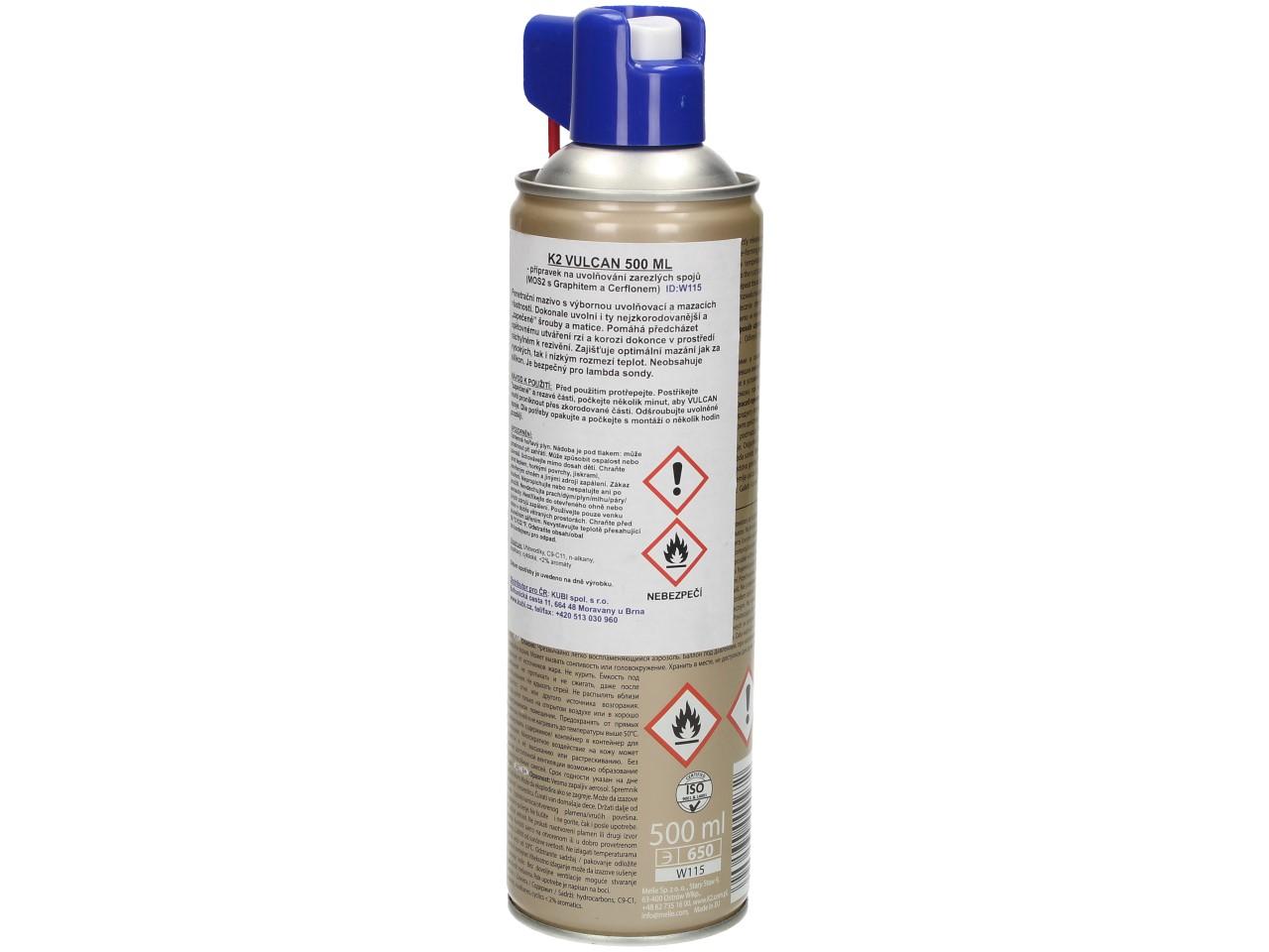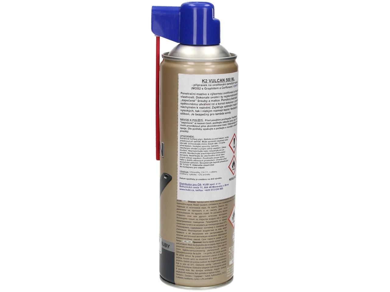 Popis: K2 VULCAN 500 ml - přípravek na uvolňování zarezlých spojů (MOS2 s Graphitem a Cerflonem)