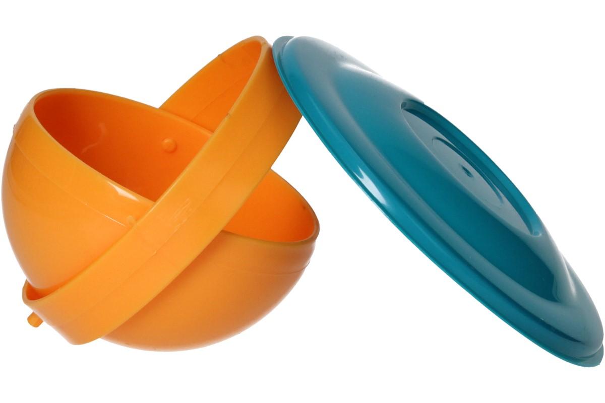 Tahle super fantastická miska, se speciální konstrukcí a rotací 360 °, jejíž otevřená část zůstane vždy nahoře, zabrání vysypávání jídla. Miska má po bocích držadla, díky kterým ji pěkně chytnou i ty nejútlejší dětské ručičky. Na spodní straně jsou umístěny malé nožičky pro lepší stabilitu na pevném podkladu. Ať s miskou manipulujete jakkoli, otevřená část zůstává vždy navrchu. Součástí misky je i speciální víko, s nímž lze obsah uzavřít. Potraviny tak vydrží déle čerstvé a chutné.