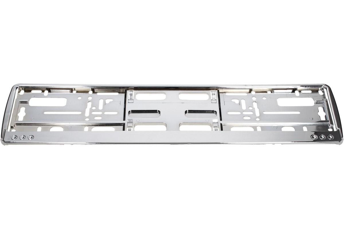 Plastová podložka pod registrační značku vozidla (státní poznávací značku), otvory pro univerzální montáž. Lesklá stříbrná podložka je bez nápisů a erbů.