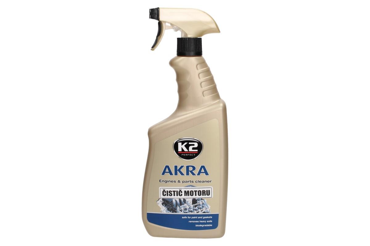 K2 AKRA 770 ml - čistič motorů je přípravek na čištění motorů a podlah. Speciální složení preparátu AKRA je šetrné vůči životnímu prostředí, neboť obsahuje směs účinných tenzidů s přípravkem aktivních nanočástic. Ty pomáhají vyčistit i ty nejšpinavější povrchy, aby mohl motor opět vypadat jako nový. Nepoškozuje lak ani gumové těsnění, zato však chrání kov před korozí.