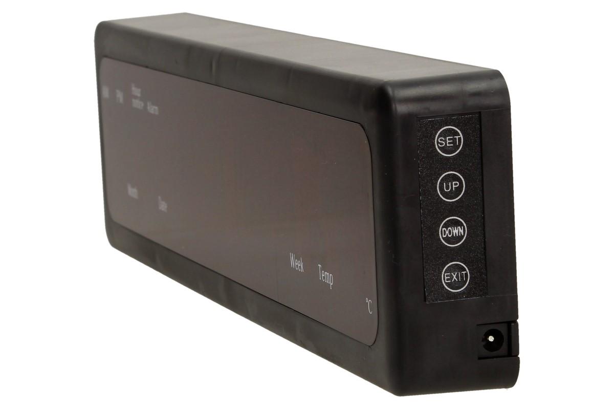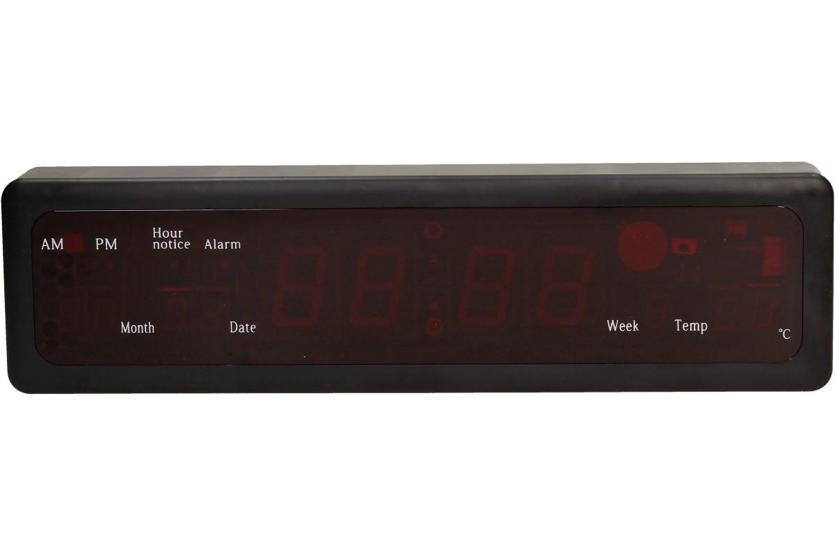LED Digitální hodiny s displejem jsou v moderním provedení. Digitální hodiny mají 9 funkcí, které jistě rádi oceníte. Jsou v černém designu o rozměrech 32 x 8,5 x 3,5 cm. Hodiny obsahují 4 tlačítka na celou manipulaci s hodinami. LED červené světlo, které dodá hodinám zajímavý vzhled. Hodiny můžete pověsit na zeď nebo je položit na stůl. Funkce: - Čas, datum, týden a teplota - Vyhledávání v kalendáři 50 letech - Vyhledávání v režimu 12 a 24 hodin - Funkce paměti času. Uživatel nepotřebuje obnovit čas po uplynutí doby po opětovném zapnutí napájení. - Funkce oznamování hodin (s výjimkou 22: 00-6: 00) - Osm skupin času alarmu - Automatické měření teploty v rozmezí od -9 do 50 ° C - Automatické nastavení světla, poloviční stmívání od 22:00 do následujícího dne 7:00 - Tlačítka