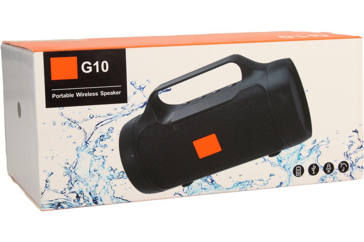 Přenosný bezdrátový bluetooth reproduktor G10 Podporuje technologii Bluetooth pro mobilní telefony, tablety, počítače, notebooky, MP3, atd. Malý, přenosný stereo reproduktor má funkci klasického radia FM, je odolný proti dešti a obsahuje poutko pro lepší přenášení. Vestavěný mikrofon umožňuje telefonní hovory Hands-free. V reproduktoru je USB paměťové zařízení, splolu s USB kabelem, nabitý vydrží hrát 3-4 hod. Tento designově velmi vyvedený reproduktor zaručuje čistou, dynamickou a detailní reprodukci každého zvuku. Kompatibilní se sluchátky k počítači, mob.telefonu, tabletu a TV bezdrátovému přehrávání hudby. AUX vstup umožňuje spojit reproduktor se zařízením, které nepodporuje Bluetooth. Podporuje kartu TF. Přenosný bezdrátový bluetooth reproduktor G10 specifikace: