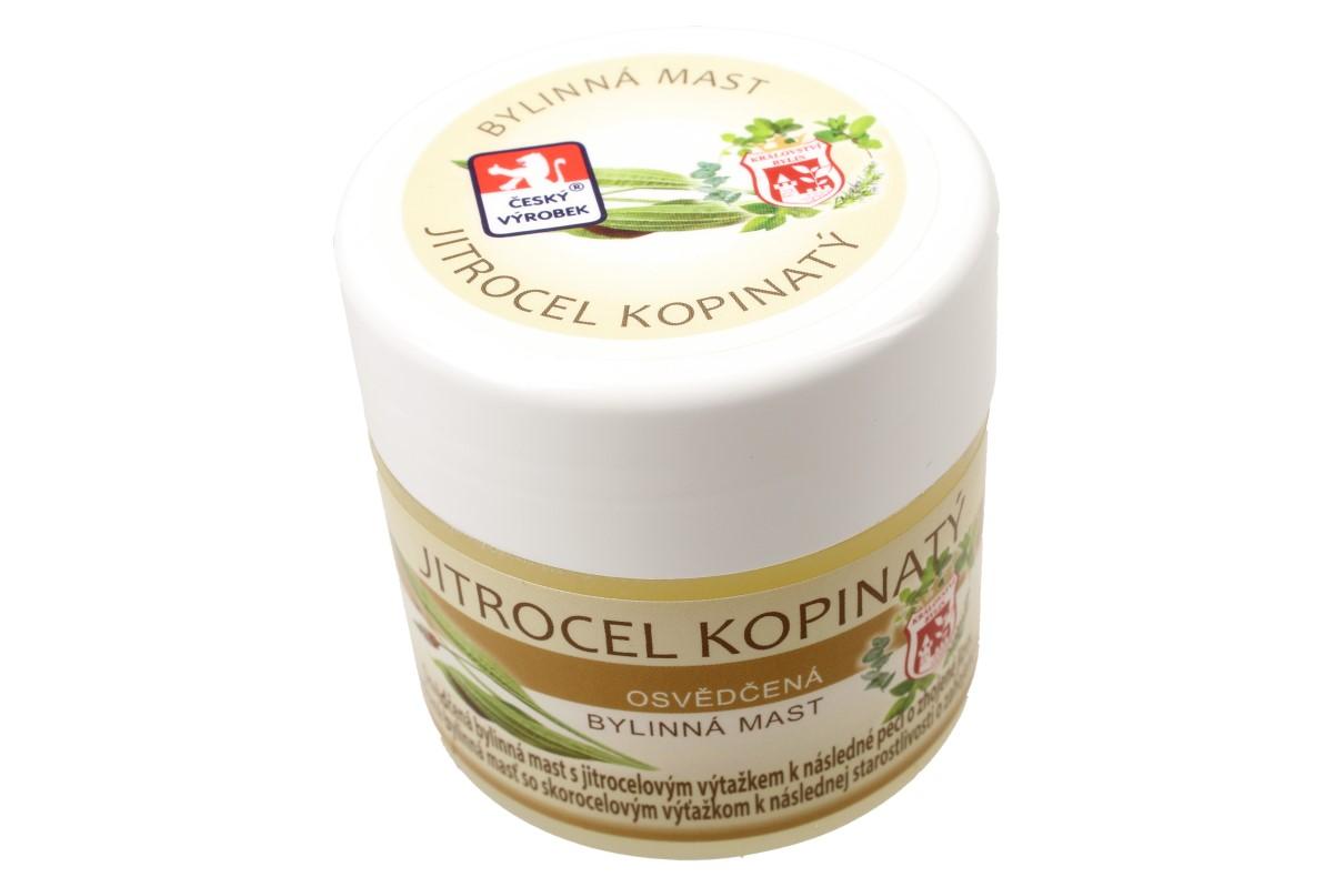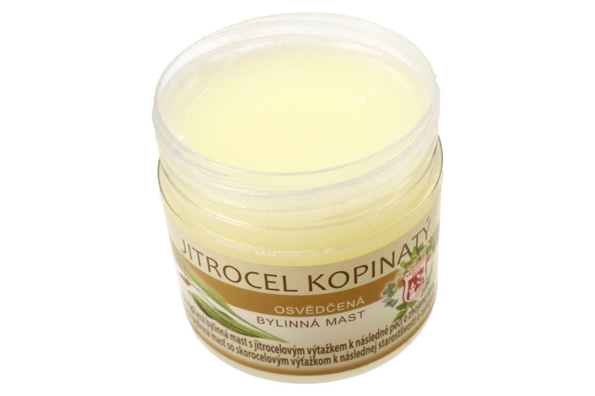 Bylinná mast 150 ml - jitrocel kopinatý Osvědčená bylinná mast s výtažkem jitrocelovým - k následné péči o zhojené jizvy. Vhodná i k péči o kůži s drobnými odřeninami a poraněními. Jitrocel velmi příznivě působí na kůži. Návod k použití: Mast aplikujte na postižené místo několikrát denně. Pro zvýšení účinku je vhodné nanést na postiženou oblast větší množství přípravku, ovázat a nechat působit dlouhodobě – například přes noc.