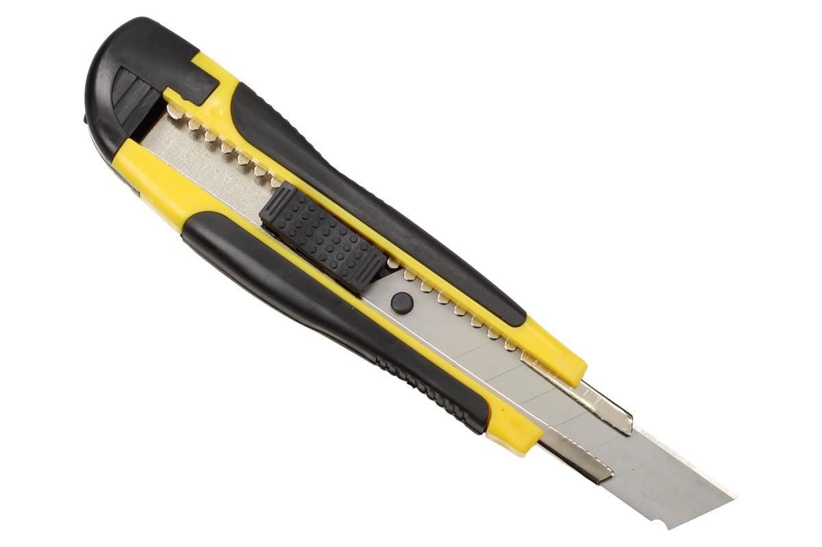 Odlamovací nůž je kvalitní profi nůž se zacvakávací pojistkou proti sklouznutí nože a pro bezpečnější ochranu. Nůž je praktická pomůcka na řezání koberců, kartonů, nebo různých drátků. Vhodné do domácnosti, pracovny i do dílny. Dodáváno v oranžové nebo ve žluté barvě. Rozměry nože: 18 mm.