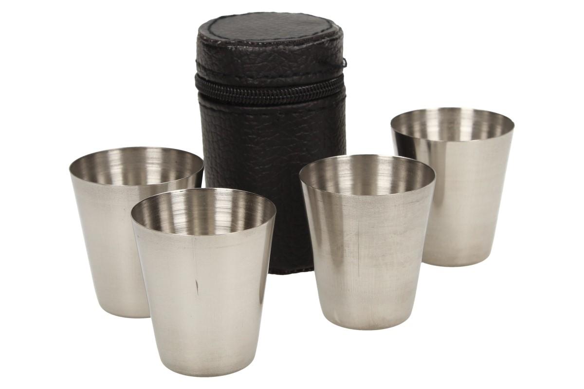 Mini kovové nerez panáky na alkohol 4 x 3,5 cm 4 kusy s pouzdrem jsou díky skladovatelnosti velmi praktické na čundry, výlety, dovolenou i na párty. Panáky jsou uchované v pevném, oválném pouzdře pro lepší nošení např. v batohu nebo kabelce. Vhodné i jako dárek pro houbaře, zahrádkáře nebo pro kamarády, co milují grilování a posezení s přáteli.