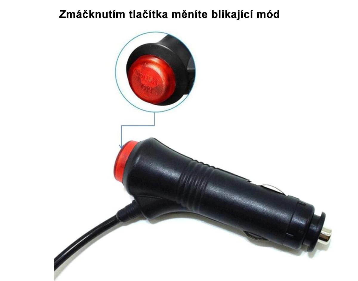Univerzální kompatibilní světelný alarm, maják pro automobily vybavené 12 voltovým DC cigaretovým adaptérem (zapalovačem). Led maják jednoduše připojíte do zdířky auto zapalovače a pomocí knoflíku měníte mezi 7-dmi blikajícími módy. Je vhodný třeba na policejní motocykl, auto nebo k označení překážky za snížených viditelností