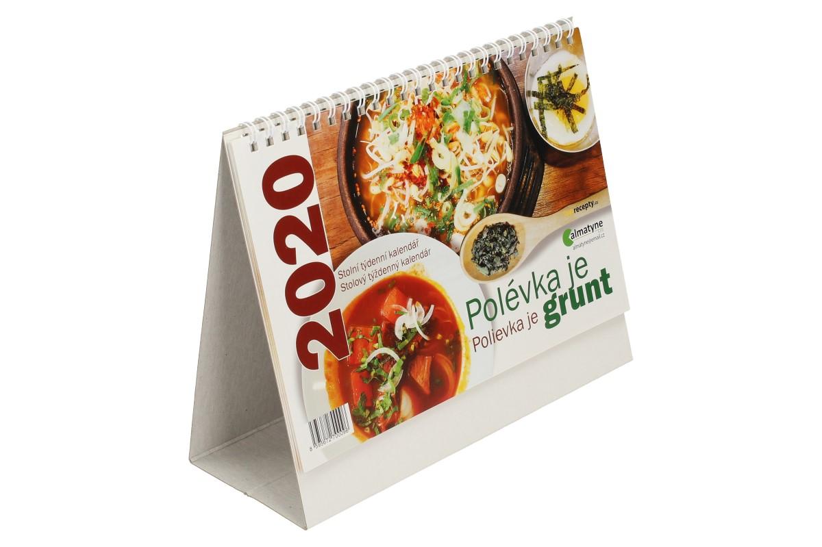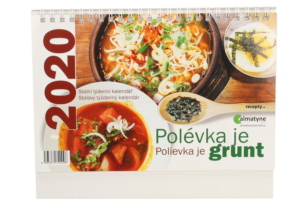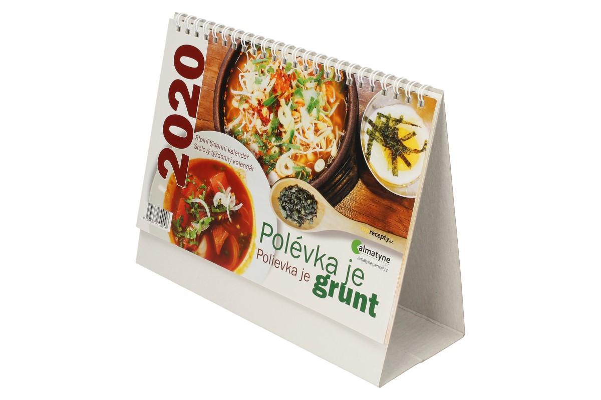 Stolní týdenní kalendář 2020 Polévka je grunt (22 x 17 cm) - Připravte se na rok 2020 a vybavte se praktickým, zajímavým kalendářem s krásnými obrázky a recepty polévek na každý týden. Kalendář si můžete postavit na stůl. Kalendář obsahuje dvě stránky navíc, kde naleznete plánovací kalendář, významné dny a svátky v kalendáři. Kalendář lze využít prakticky všude, v práci, ve škole i doma.