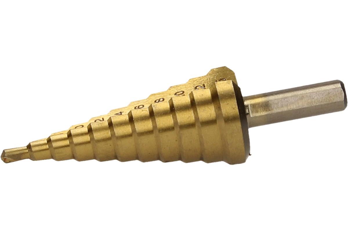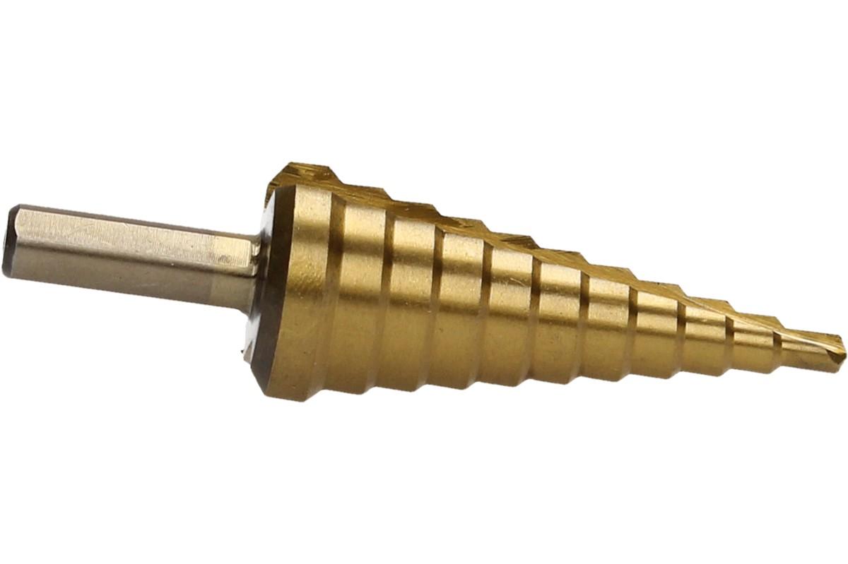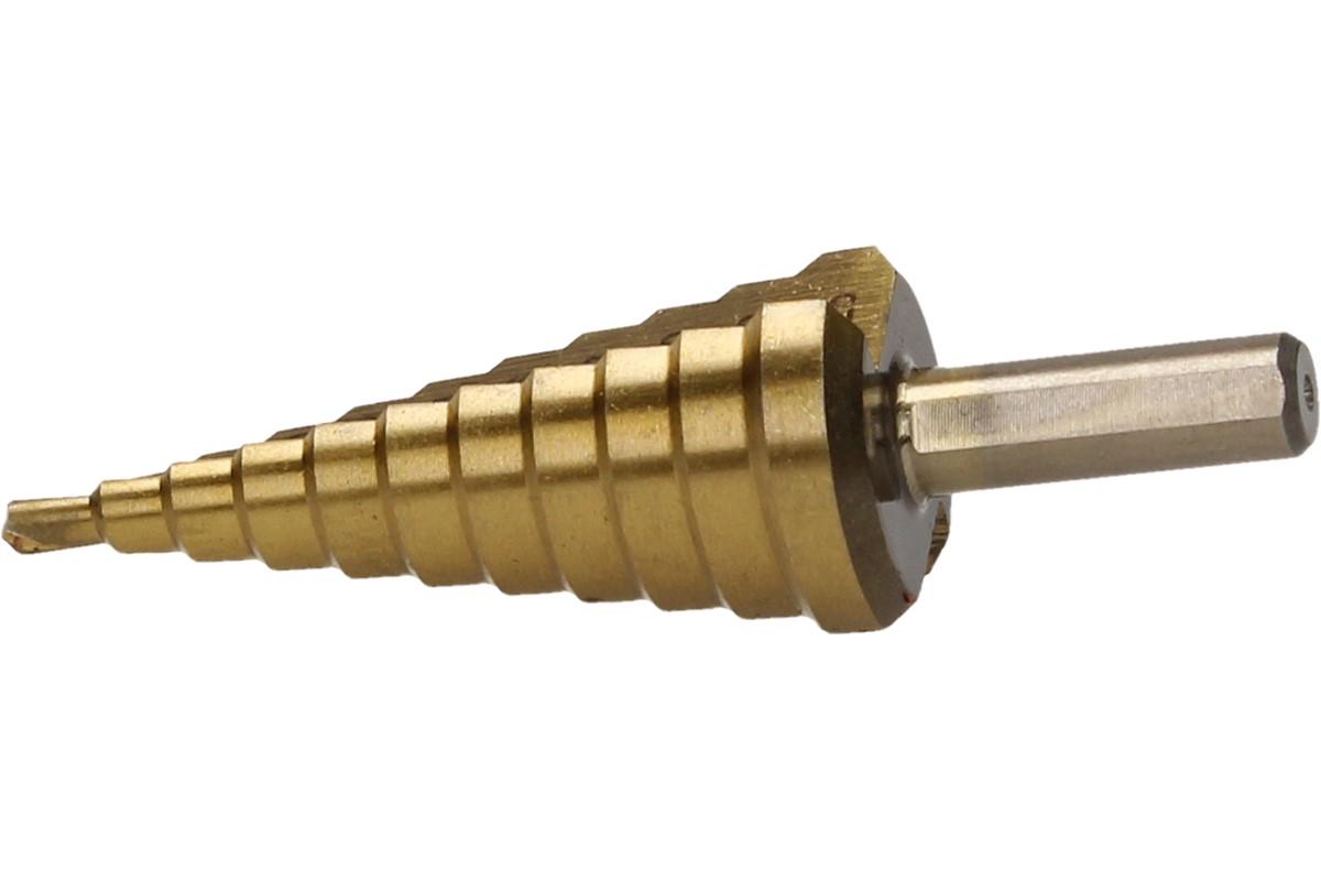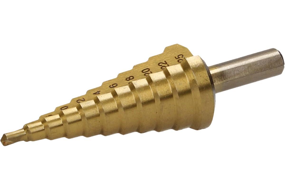 Kvalitní stupňovitý vrták zhotovený z kvalitního kovu je odstupňovaný po 2 mm v rozsahu 4–25 mm. Disponuje celkem 11 otvory a 25mm stopkou. Celková délka vrtáku činí 60 mm.
