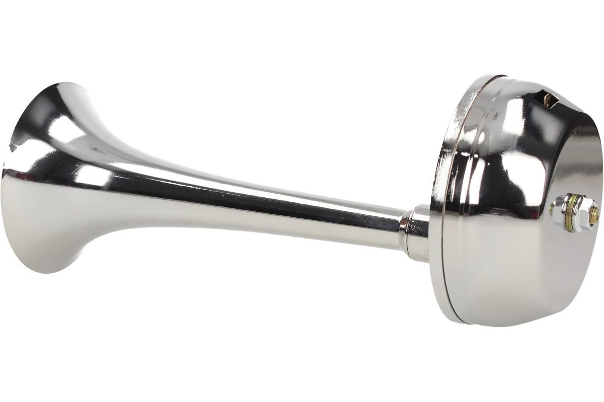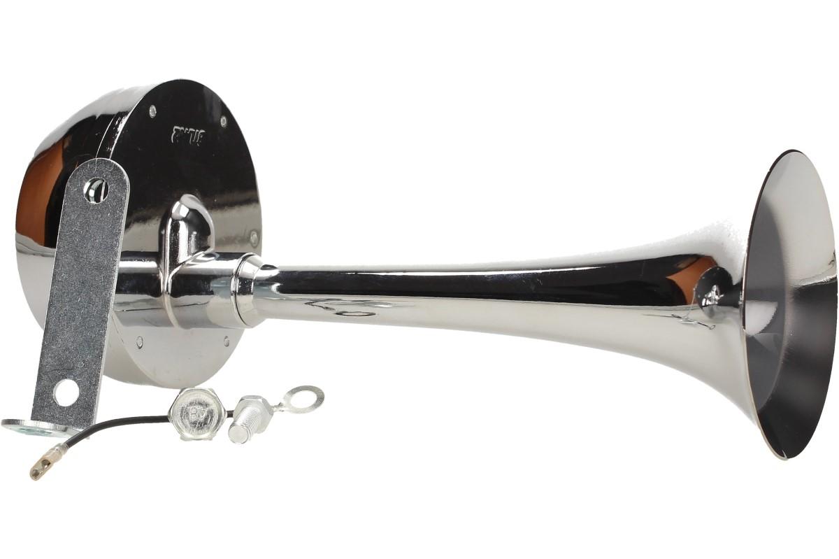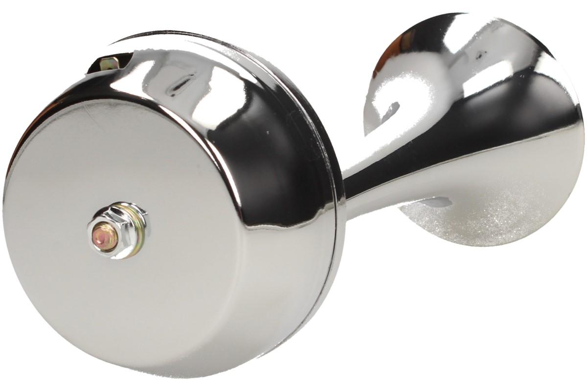 Elektrický klakson bez kompresoru 12V je velmi výkonný klakson v chromované úpravě vhodný do automobilu, nákladního vozu nebo na motocykl. Siréna vydává vysoký nepřerušovaný tón, podobný troubějícímu vlaku. Tento klakson vydává opravdu hlasitý zvuk, díky kterému si Vás každý všimne.