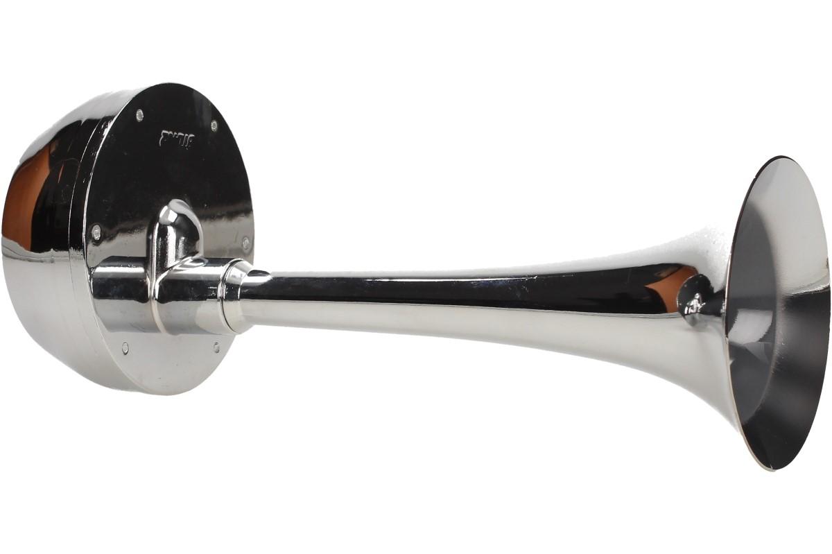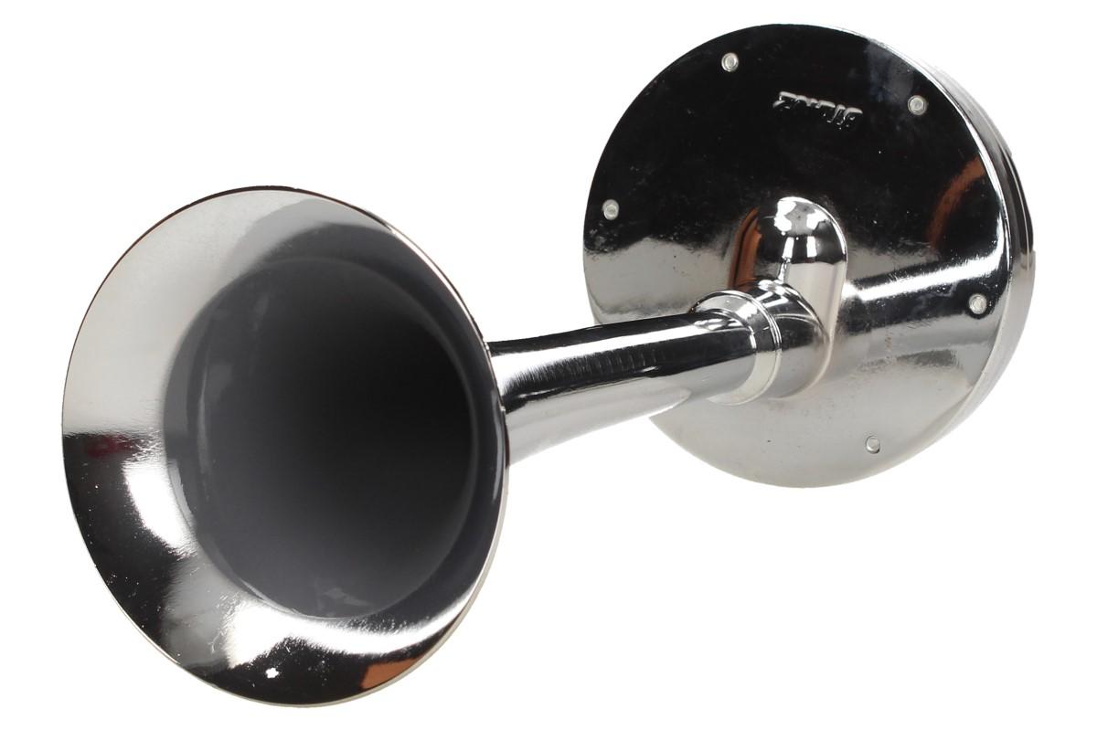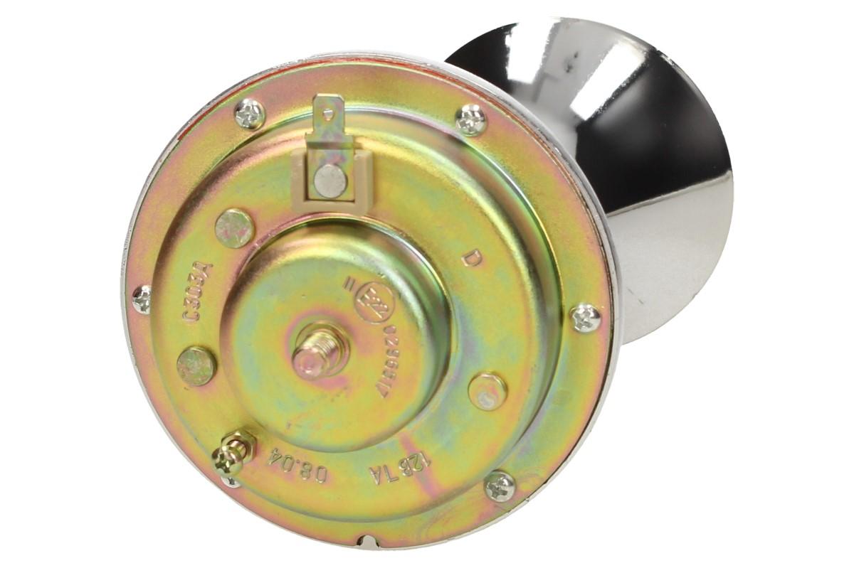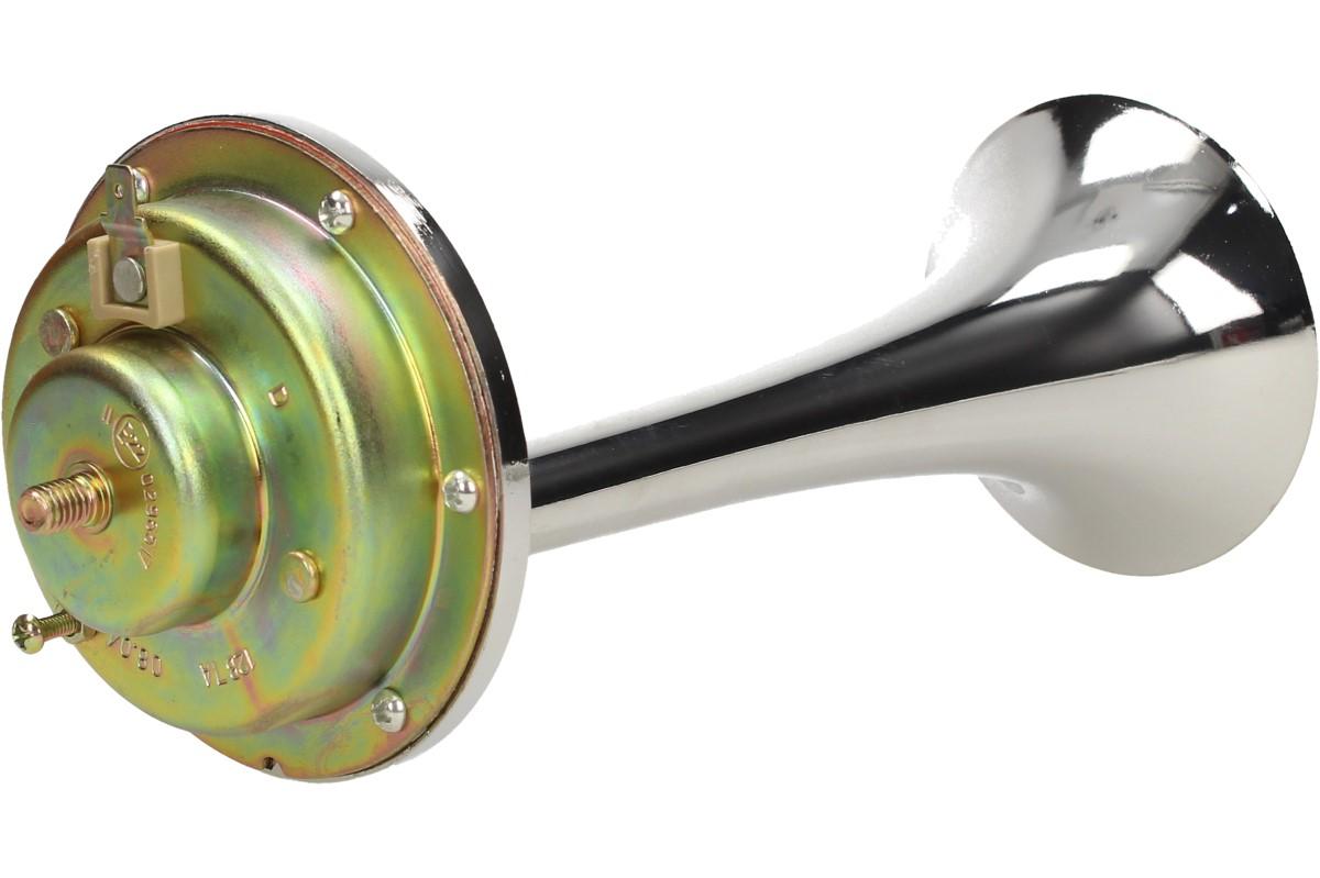 Elektrický klakson bez kompresoru 12V je velmi výkonný klakson v chromované úpravě vhodný do automobilu, nákladního vozu nebo na motocykl. Siréna vydává vysoký nepřerušovaný tón, podobný troubějícímu vlaku. Tento klakson vydává opravdu hlasitý zvuk, díky kterému si Vás každý všimne.