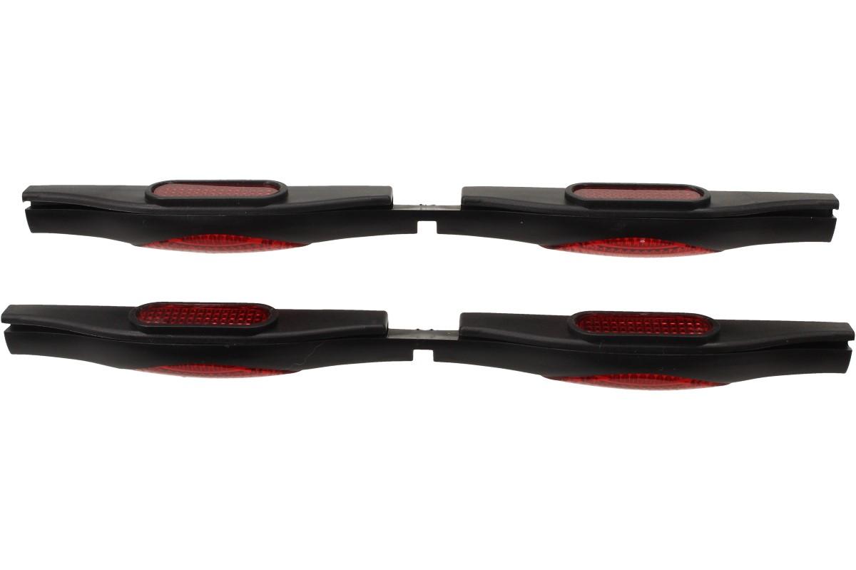 Chraniče dveří s odrazkou 2ks jsou tvarovány z plastu, prostřední část je zůžena a díky tomu je možné chránič ohýbat. K připevnění není třeba žádného nářadí, chrániče se pouze nasadí na hranu dveří vozidel, lze nasadit i na tvarovaná místa. Určeno k nalepení na okraj dveří automobilu.