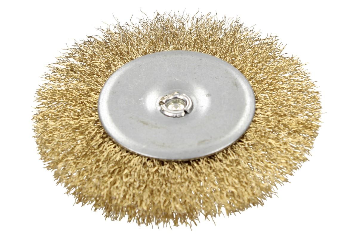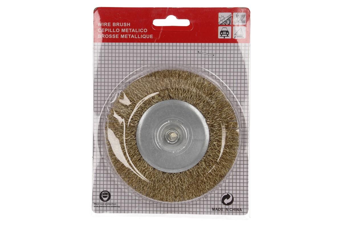 Drátěný kartáč na stopce je vyroben z mosazného drátu o tloušťce 0,33 mm. Zesílená konstrukce kartáče umožňuje efektivní čištění ocelových konstrukcí. Kotouč má průměr 100 mm, vhodný pro použití do 4500 otáček za minutu a je opatřen upínací stopkou o průměru 6 mm. Vhodný pro leštění, či odstraňování nečistot různých velikostí. Díky svému upevnění je vhodný pro použití ve vrtačkách.