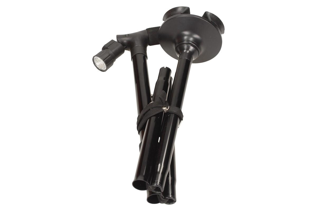 Skládací hůlka s LED osvětlením je jediná hůl, které můžete věřit při poskytování bezpečné a spolehlivé podpory na jakémkoli povrchu. Čtyřbodová základna je navržena tak, aby zlepšila stabilitu pro přirozenější krok kamkoli jdete. Běžné typy holí mohou při chůzi sklouznout, ale unikátní otočný čep umožňuje holi pohybovat se s vámi, zatímco základna drží její sevření. Hůl je tak stabilní, že dokáže stát sama bez držení či opření. Kam hůl postavíte, tam ji najdete. Skládací design umožňuje vzít si ji s sebou například do kabelky nebo batohu. Složte jej, abyste si usnadnili cestování. Skládací hůlka s LED osvětlením je také dostatečně stabilní, aby se sama složila. Je to pěší hůl, která stojí po vašem boku a usnadňuje vám dělat věci, které se vám líbí. Tato hůl má vestavěné LED osvětlení, díky kterému si můžete osvětlit cestu dopředu, nebo zem u vašich nohou.