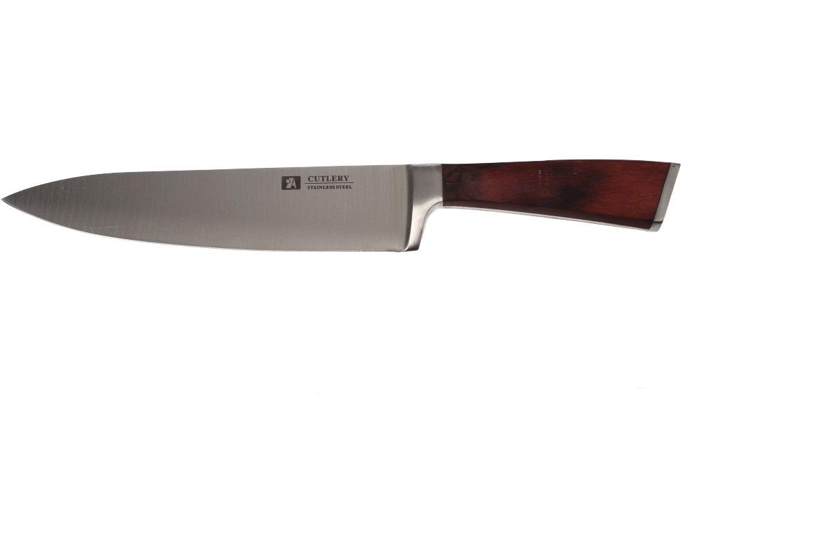 Kuchařský nůž Cutlery 33 cm je nejvšestrannějším nožem v kuchyni. Snadno s ním nakrájíte maso, ryby, zeleninu, ovoce, pečivo, tvrdé sýry i jiné suroviny. Čepel je vyrobena z vysoce kvalitní ušlechtilé nerezavějící oceli, která je dokonale ostrá a navržena pro snadné krájení, sekání a mletí. S protáhlou, široukou čepelí vám nebude dělat problém řezat velké klouby masa. Rukojeť je tvarovaná tak, aby se lépe uchytila a bylo bezpečnější držení.