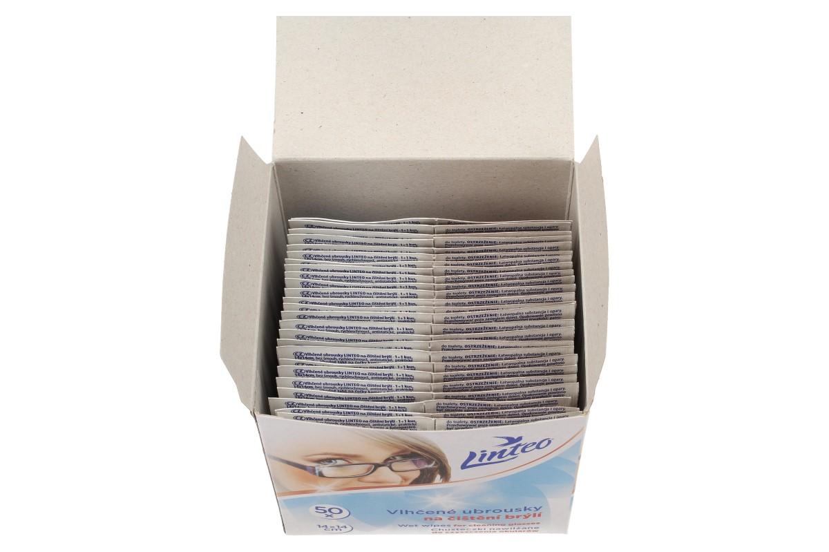 Linteo vlhčené ubrousky na brýle 50 ks jsou vyrobeny z jemného vlhčeného krepu, díky kterému důkladně a šetrně očistíte své brýle. Ubrousky očistí brýle bez šmouh, jsou rychle schnoucí a prakticky balené po jednom. Odeberte si pár ubrousků na cestu a můžete vyrazit. Vhodné pro brýle, fotoaparáty, LCD monitory, mikroskopy, dalekohledy.