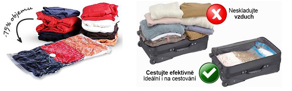 Kouzelný pytel, i tak by se dal pojmenovat vakuový pytel, který přináší revoluční způsob jak uskladnit věci a ušetřit prostor. Zároveň naprosto fantastická záležitost a nepostradatelný pomocník pro alergiky. Vakuový pytel umí věci, co se do něj vloží, zbavit všech nežádoucích mikroorganismů. Do pytle můžete vložit plyšáky, deky, spacáky, oblečení, peřiny, vše co je z měkké textury. Jakýmkoliv vysavačem vysajete z pytle vzduch, tím roztrháte dýchací ústrojí roztočů a jiných mikroorganismů a tak je usmrtíte. Při vysátí vzduchu se objem věcí v pytli zmenší o 75% a tak se toho vejde mnohem víc do skříně, do kufru na dovolenou, nebo do auta při stěhování. Věci ve vakuových pytlích jsou chráněné před vlhkostí, prachem a škůdci. Po vyndání věci z pytle opět nabudou svůj původní tvar, velikost i vlastnosti, ale už bez roztočů. Vakuové pytle jsou vyrobeny z pevného a odolného plastu a lze je používat opakovaně. Tento kouzelný, efektivní a ekonomický pytel prostě musíte mít doma alespoň jeden.