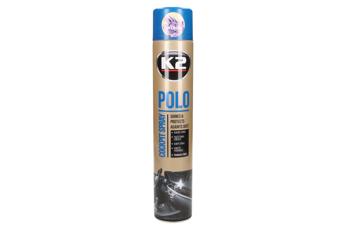 Tento K2 POLO COCKPIT SPRAY 750 ml je jeden z nejlepších ve své kategorii. Slouží k naleštění a regeneraci všech plastů interiéru vozidla. Díky unikátní přísadě tento přípravek zanechává ideální lesk přístrojových desek a jiných plastových částí. Má 3 funkce: leští a konzervuje, chrání před škodlivým UV zářením, působí antistaticky a zanechává příjemnou dlouhotrvající vůni. Stačí nastříkat na požadované místo, rozleštit hadříkem a následně se radovat z čistého auta.
