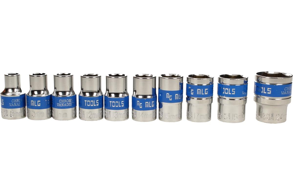Sada gola klíčů s ráčnou 1/2" je vhodná pro domácí opravy i pro profesionální účely. V této sadě naleznete ráčnu, která má 72 zubů, přepínací páčku R/L a uvolňovací tlačítko. Má ergonimicky tvarovanou rukojeť se zdravotně nezávadnou gumou a očkem pro zavěšení. Všechny části této sady jsou vyrobeny z vysoce kvalitní chrom-vanadiové oceli. Vše je přehledně upevňěno na plastové desce, kterou si můžete pověsit.