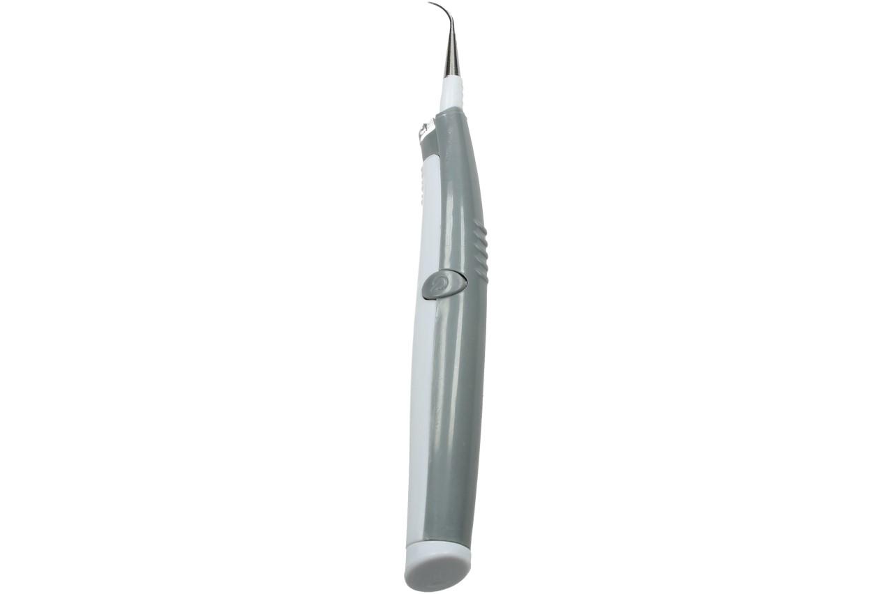 S tímto malým přístrojem Sonic Pic můžete z pohodlí domova odstraňovat zubní plak, zubní kámen a skvrny. Stačí vložit jednu AAA baterii, přiložit strojek na zub s výše uvedeným problémem. Sonic Pic vytváří přes 3000 drobných vibrací za minutu a dostanese tam, kam běžný kartáček ne. Lze jej bezpečně používat na korunky, keramické zuby, rovnátka, fazety, atd. Aby byla Vaše práce ještě efektivnější, strojek je opatřen led světlem, které vám umožní jasně vidět v dutině ústní. V balení obdržíte také silikonový nástavec, se kterým se mohou učit děti.