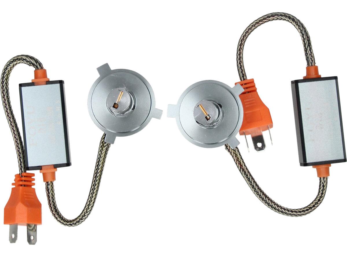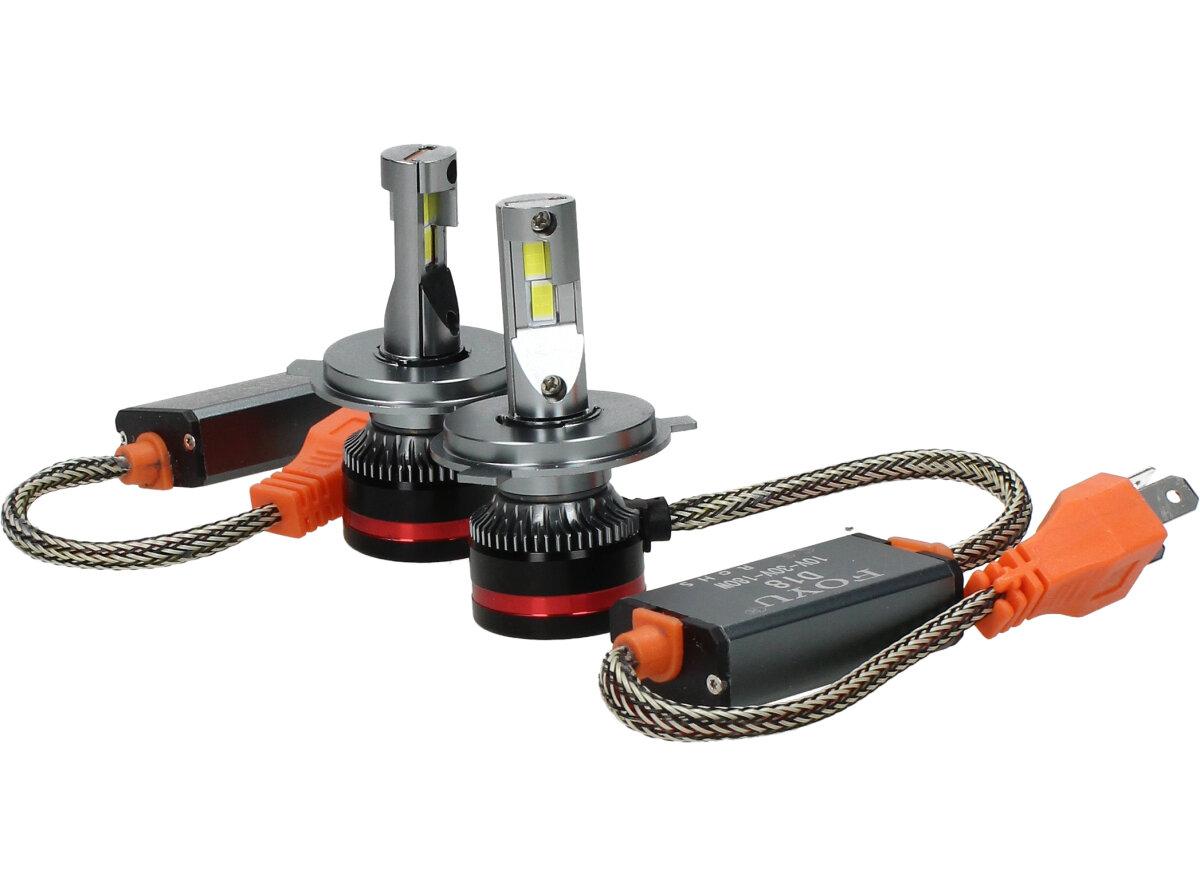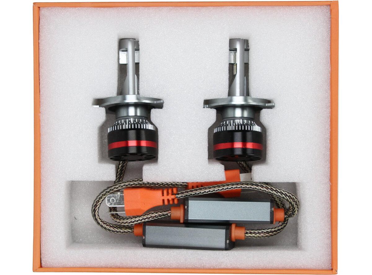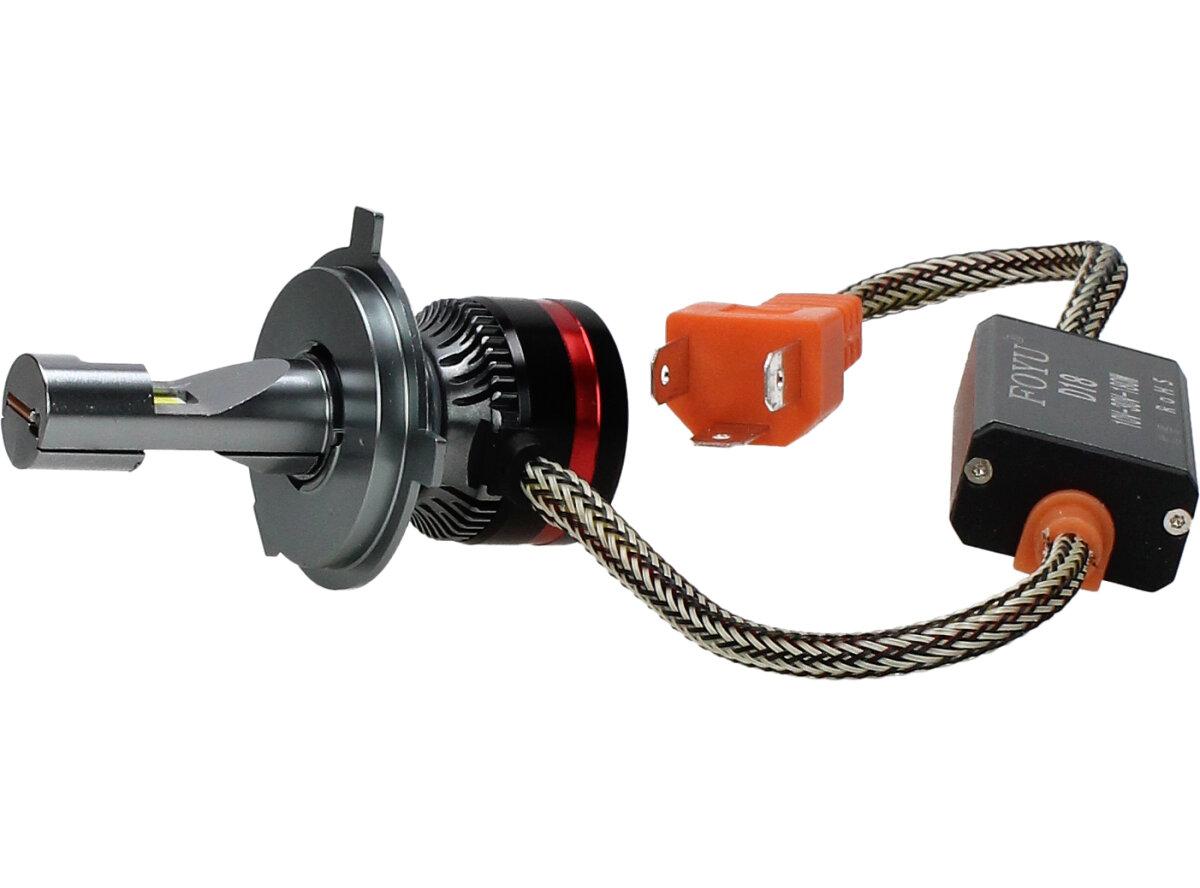 Velice odolná LED H4 žárovka s barvou světla 6000K (studená bílá) do světlometu do auta na 12V, 24V jako náhrada za klasickou nevýkonou žárovku H4. Tato Led žárovka do auta H4 má velký výkon 180W, 20 000 Lm a teplotu světla 6000K. Trafo má certifikaci RohS, samozřejmostí je podpora sběrnice CanBus.