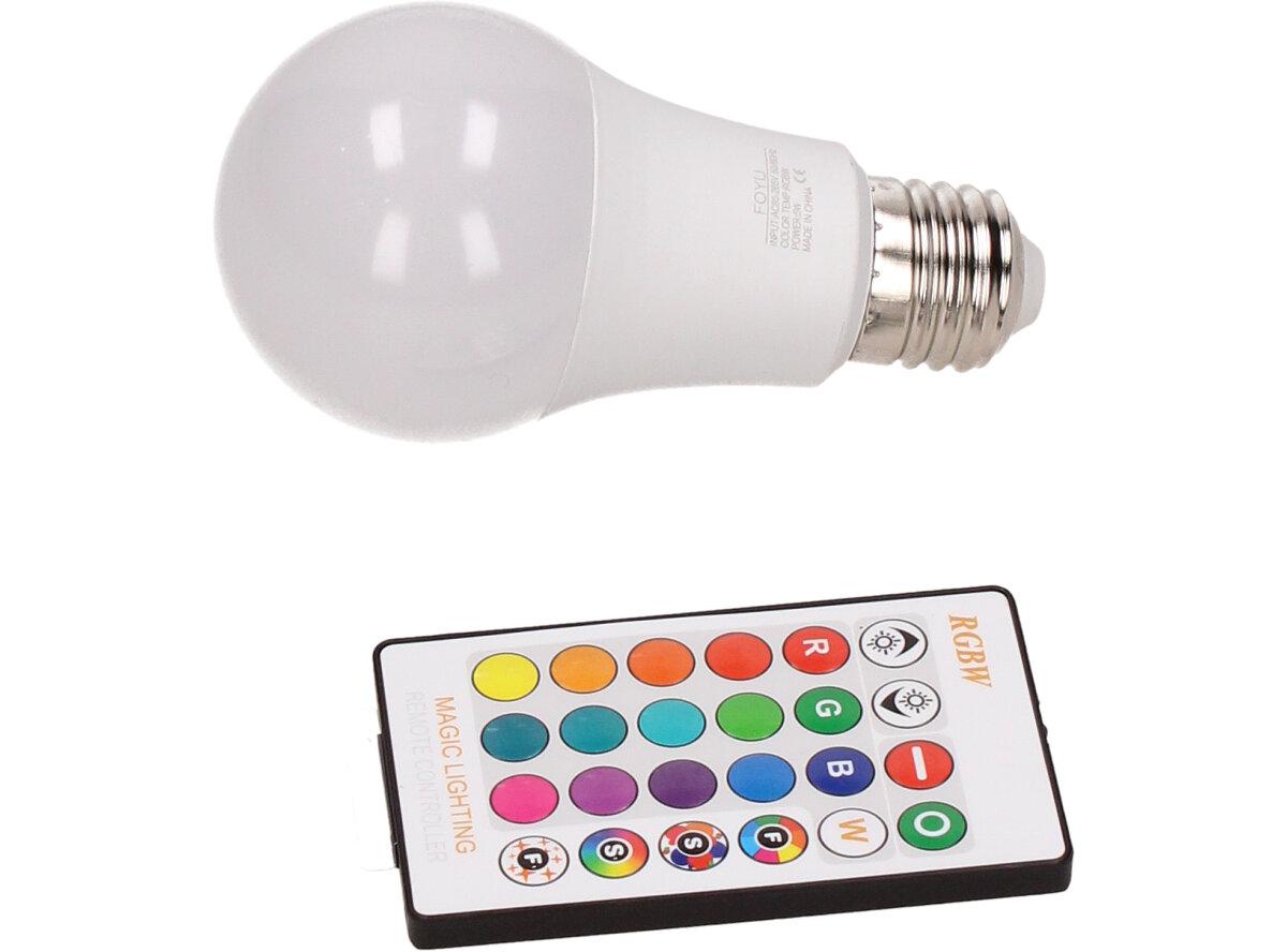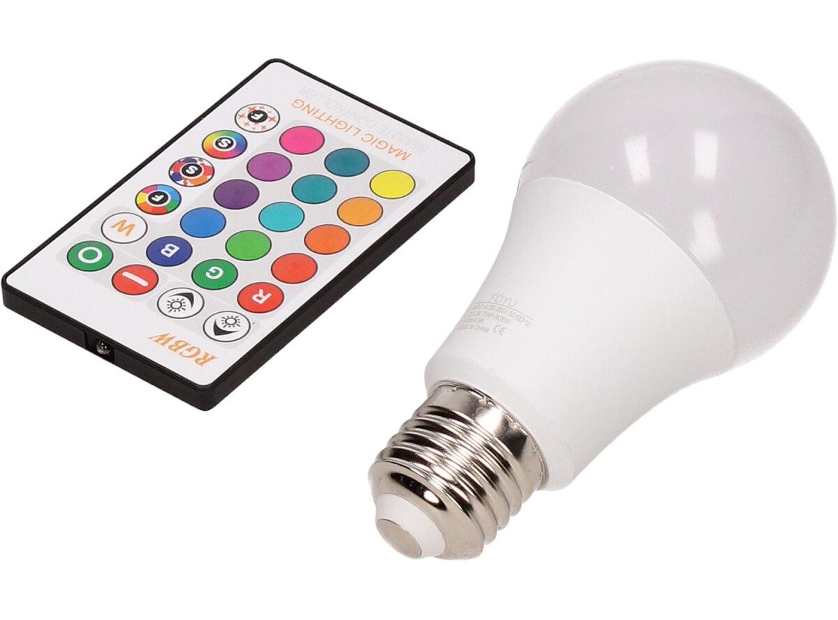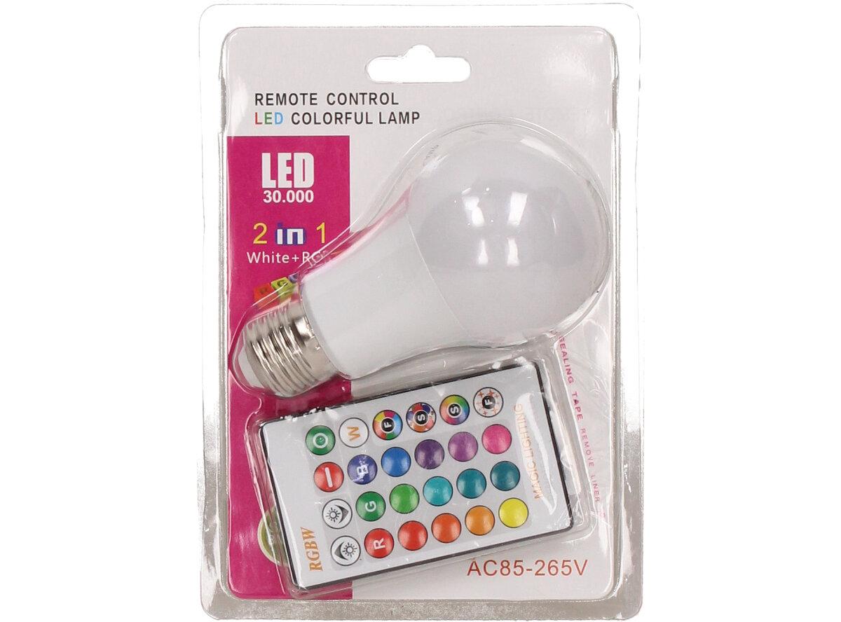 LED žárovka se zabudovaným RGB čipem, u níž je za pomoci dálkového ovládače možné měnit barvy svícení je u mnoho lidí hitem! Je možné nastavit 16 různých barev a 4 světelné efekty, navíc je možné nastavovat i intenzitu svícení. Dosah ovladače je asi 6m. Tato žárovka je vybavena plastovou konstrukcí, která zajišťuje delší životnost. LED RGB žárovka 15W na dálkové ovládání má klasický tvar a nejpoužívanější závit E27.