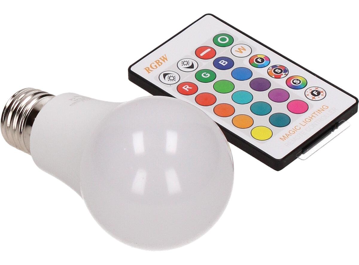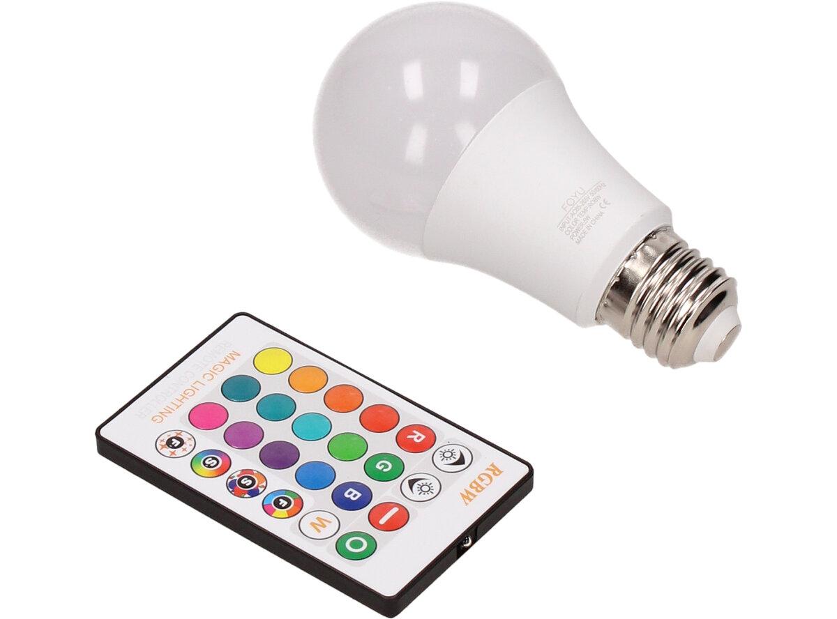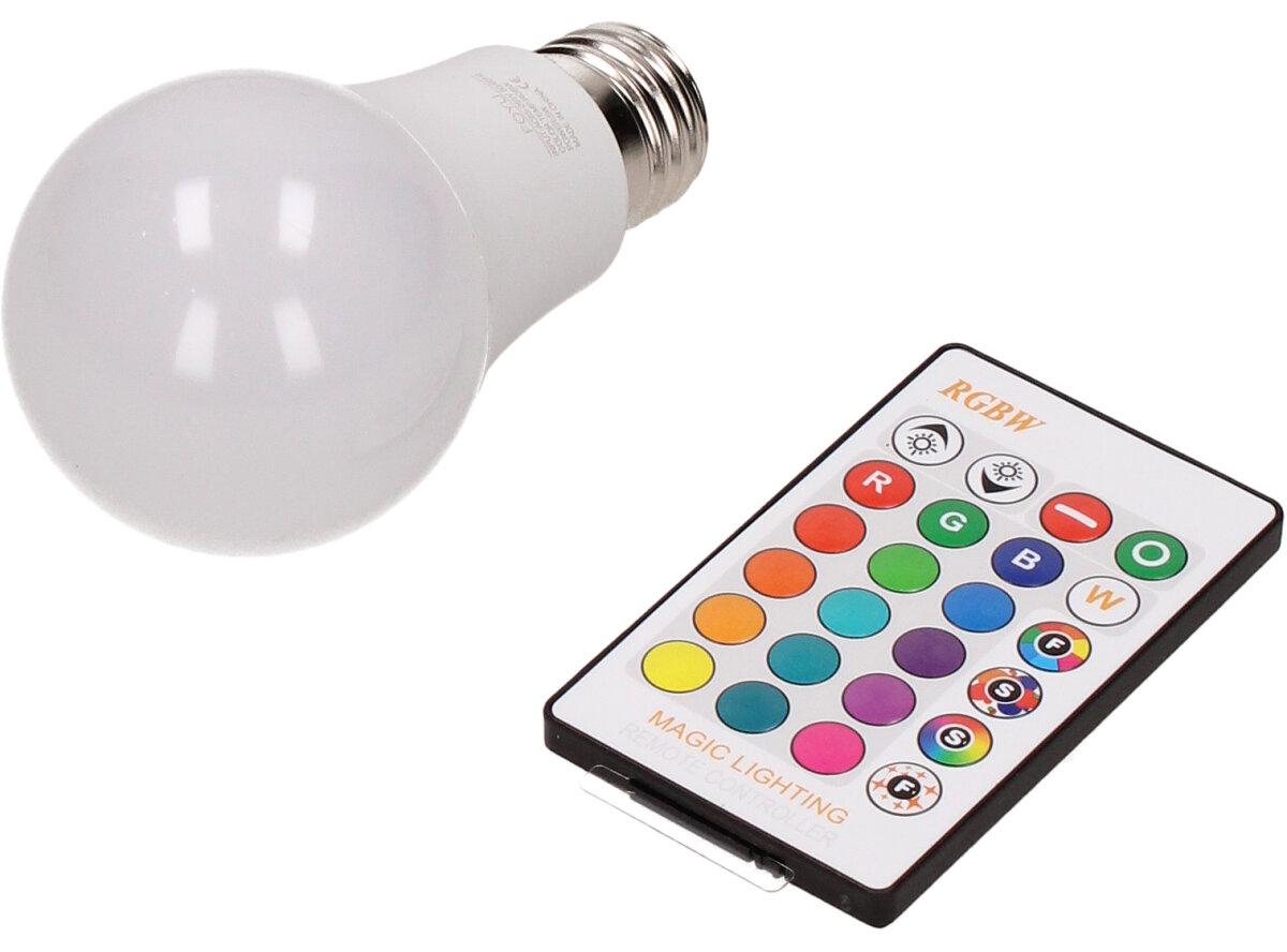 LED žárovka se zabudovaným RGB čipem, u níž je za pomoci dálkového ovládače možné měnit barvy svícení je u mnoho lidí hitem! Je možné nastavit 16 různých barev a 4 světelné efekty, navíc je možné nastavovat i intenzitu svícení. Dosah ovladače je asi 6m. Tato žárovka je vybavena plastovou konstrukcí, která zajišťuje delší životnost. LED RGB žárovka 15W na dálkové ovládání má klasický tvar a nejpoužívanější závit E27.
