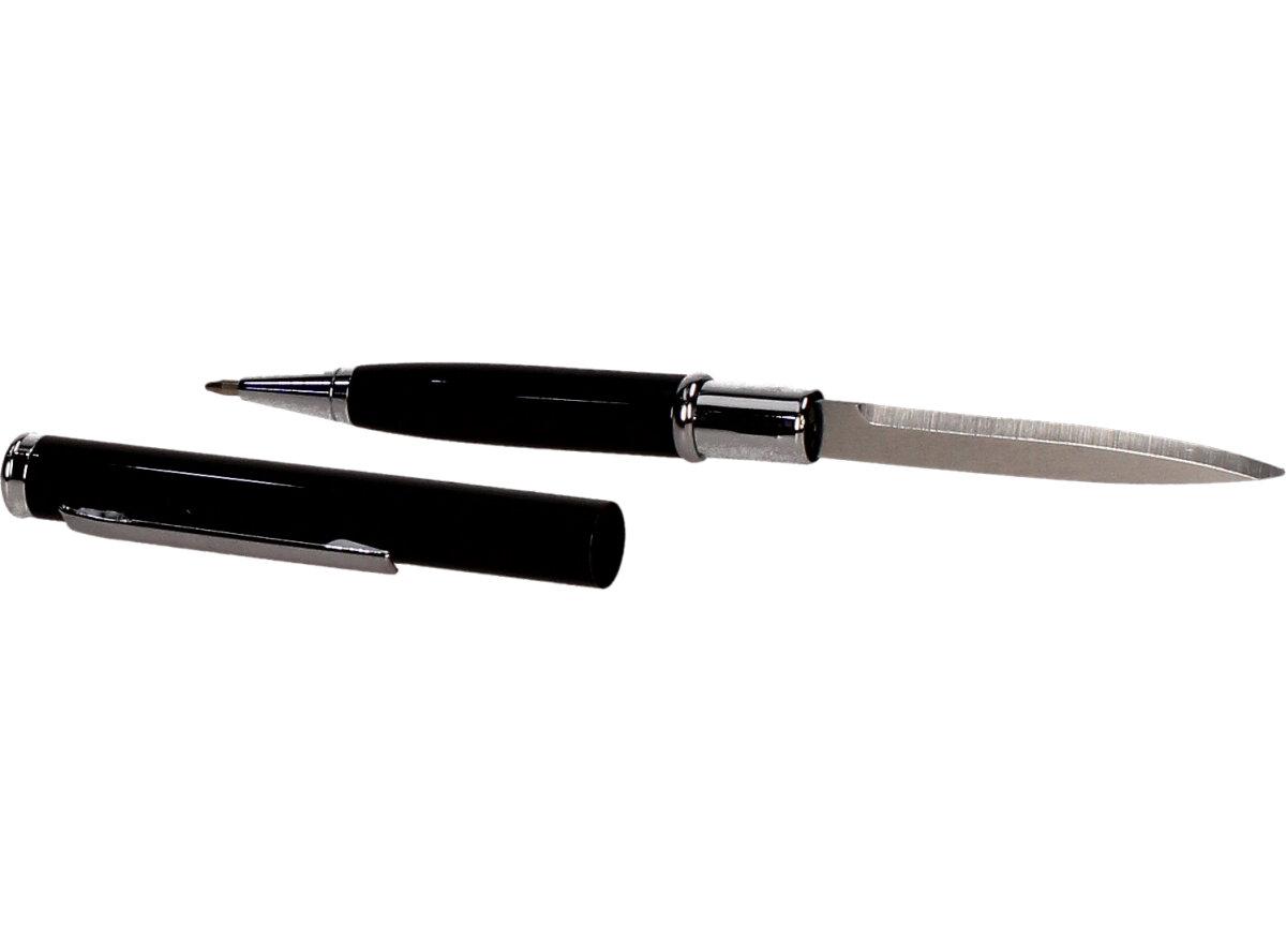Kovová propiska 2v1 Černá je designová propiska včetně nožíku uvnitř, který se hodí na cestách, jako sebeobrana nebo na dopisy