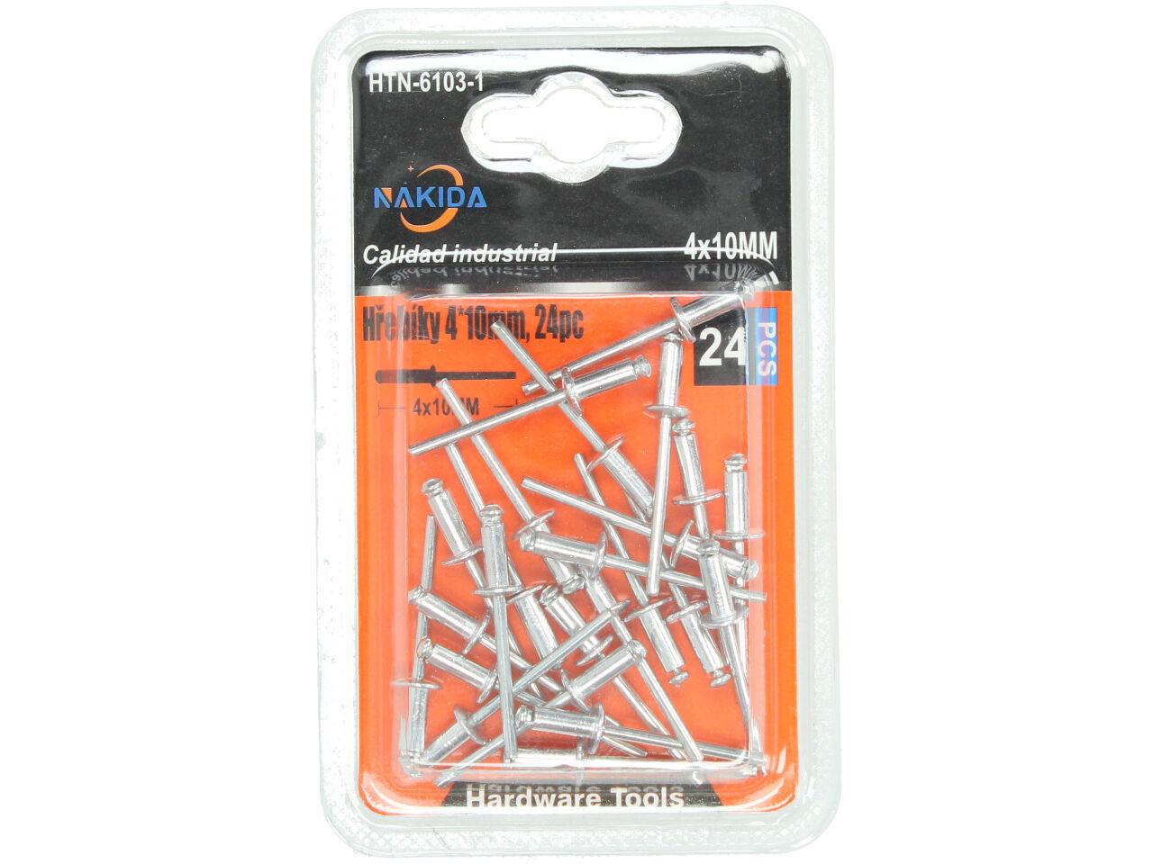 Objevte jednoduchý a efektivní způsob spojování s našimi trhacími nýty Nakida. S rozměry 4x10mm a balením obsahujícím 24 kusů jsou ideálním nástrojem pro rychlé a spolehlivé spojování materiálů. Bezpečně a pevně spojte své projekty s našimi kvalitními trhacími nýty Nakida.