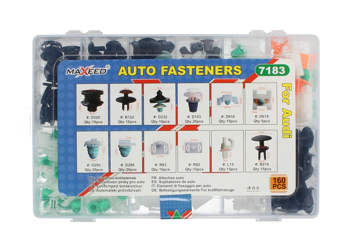 Kupte si ještě dnes výrobek Sponky a nýty 160 Ks pro vozy AUDI Maxeed XM-17236 se 100% zárukou vrácení peněz nebo reklamace Záruka na veškeré zboží a odborný servis - vše zaručeno! Faktury samozřejmostí.