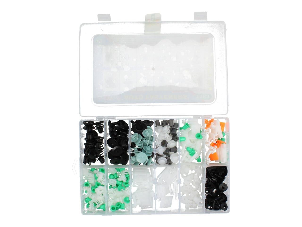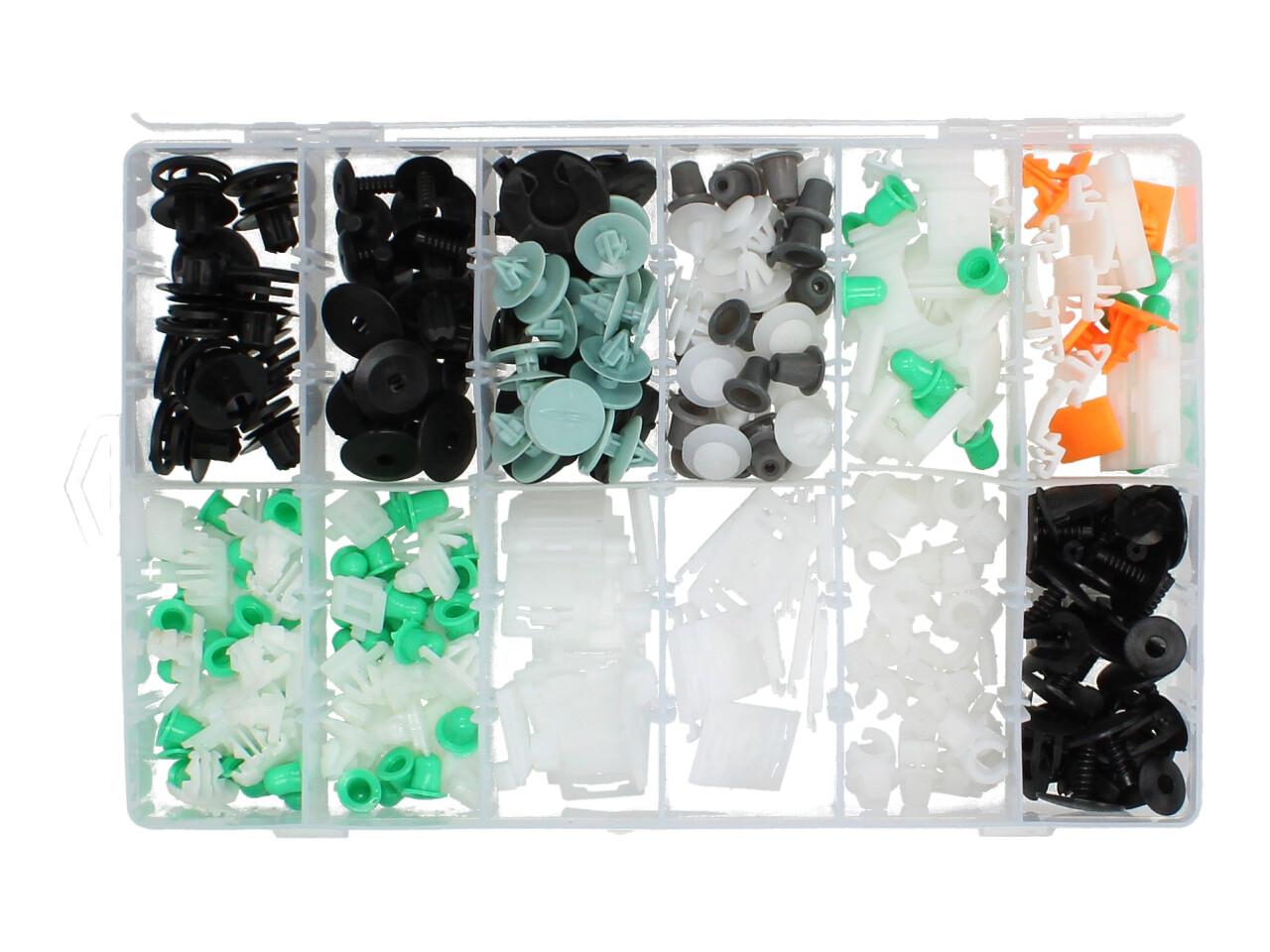 Speciální sada plastových nýtů a šroubů, sponek a dalších příchytek pro vozy Audi v plastovém kufříku