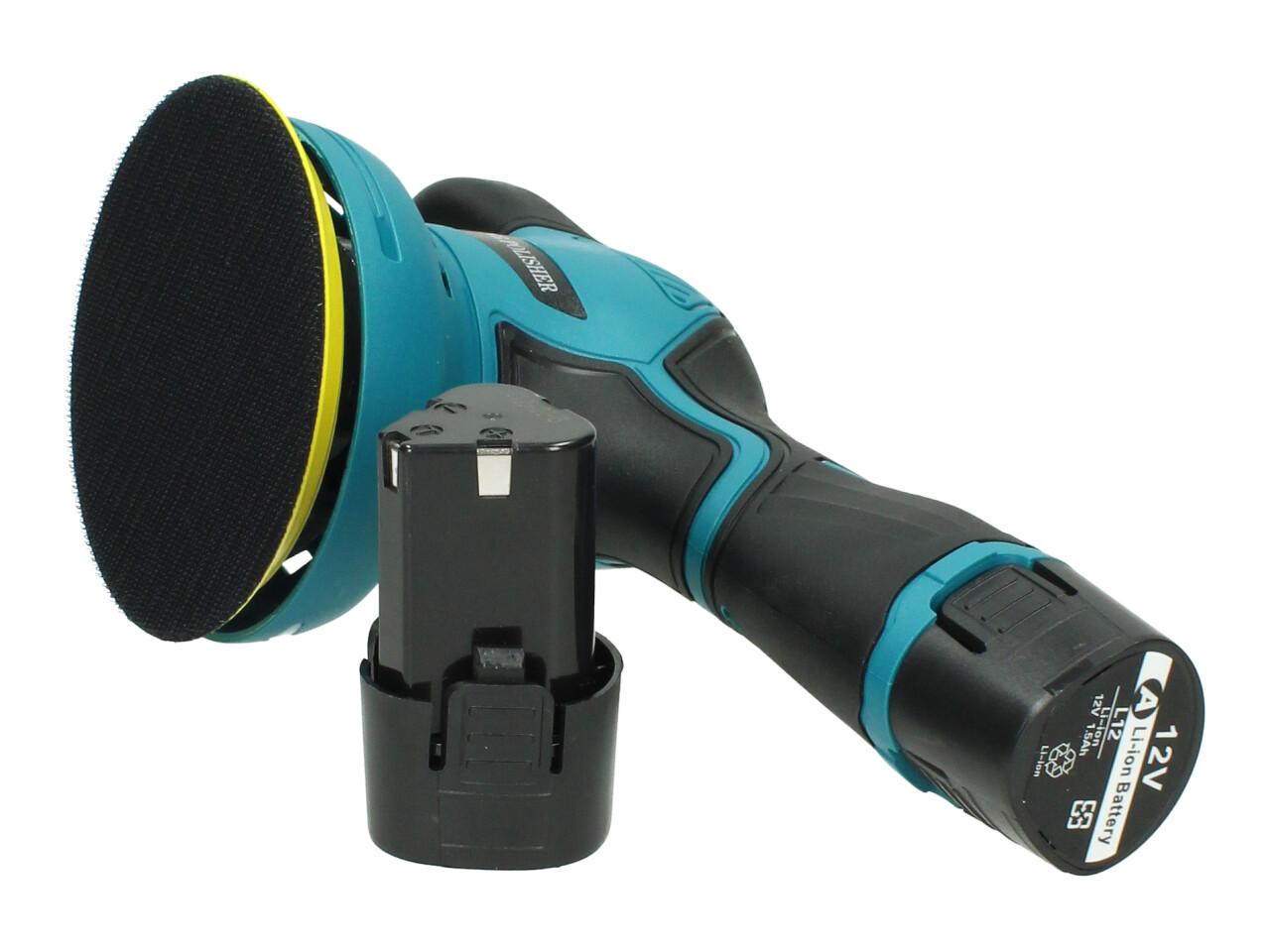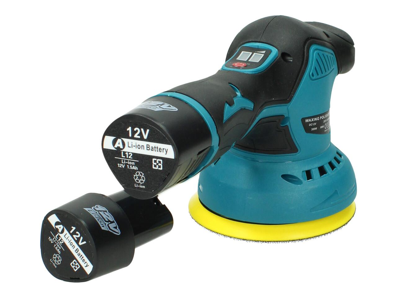 Aku leštička 12V Max včetně 2ks Aku s regulací otáček 8 módů. Excentrická lšětička určena pro leštění automobilů nebo broušení povrchů je dodávána včetně 3 kusů kotoučů, každý jiný, 2 kusu akumulátorů, klíče pro výměnu hlavy a nabíječky.