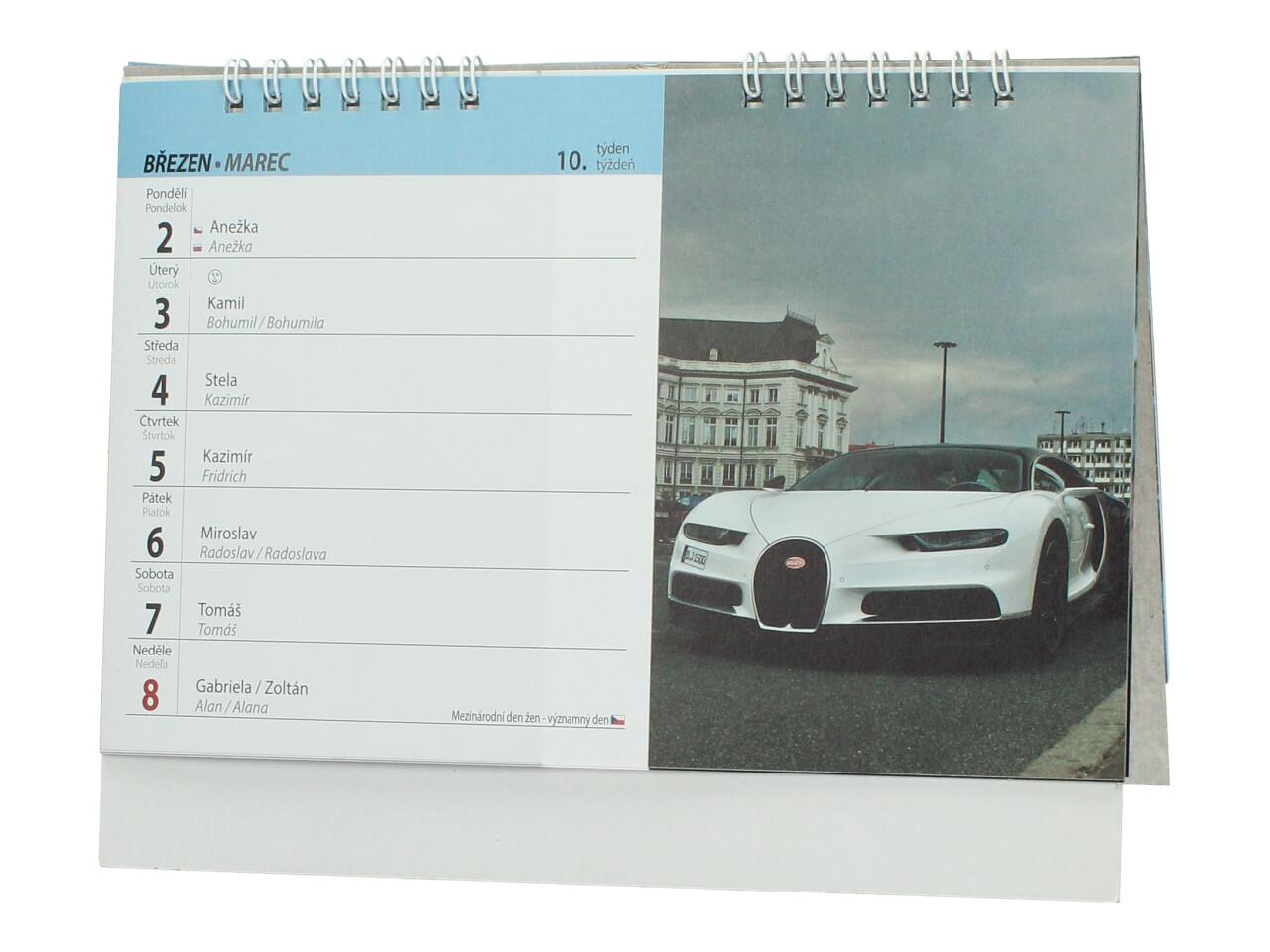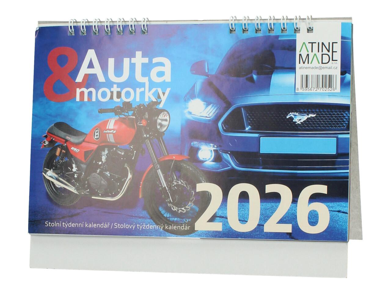 Stolní týdenní kalendář Auta & motorky 2026 potěší všechny milovníky rychlých aut, motorek a automobilového světa. Každý týden nabízí dostatek prostoru pro zapisování poznámek, schůzek a důležitých událostí, zároveň je doplněn atraktivní fotografií vozidla. Kalendář je vhodný na pracovní stůl doma, v kanceláři i v dílně.